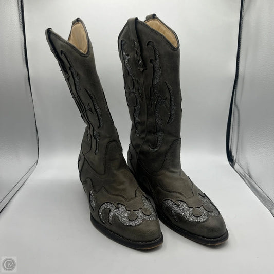 Boots Mid-calf Heels By Clothes Mentor In Silver, Size: 8.5